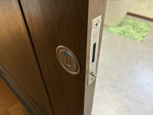 今回は、トイレの引戸ということで、それに対応した錠前を設置させていただきました。